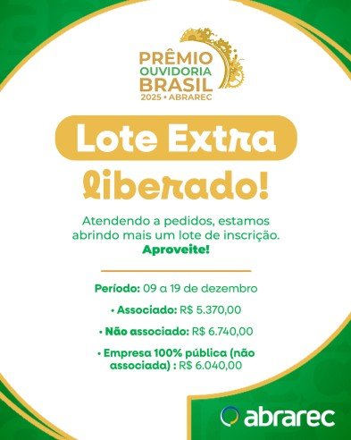 Inscrições abertas para o Prêmio Atendimento ABRAREC CX 2026! 🏆